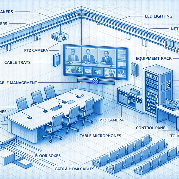 Оснащение залов совещаний. Подбор оборудования, проектирование, монтаж, пусконаладка и обучение персонала.